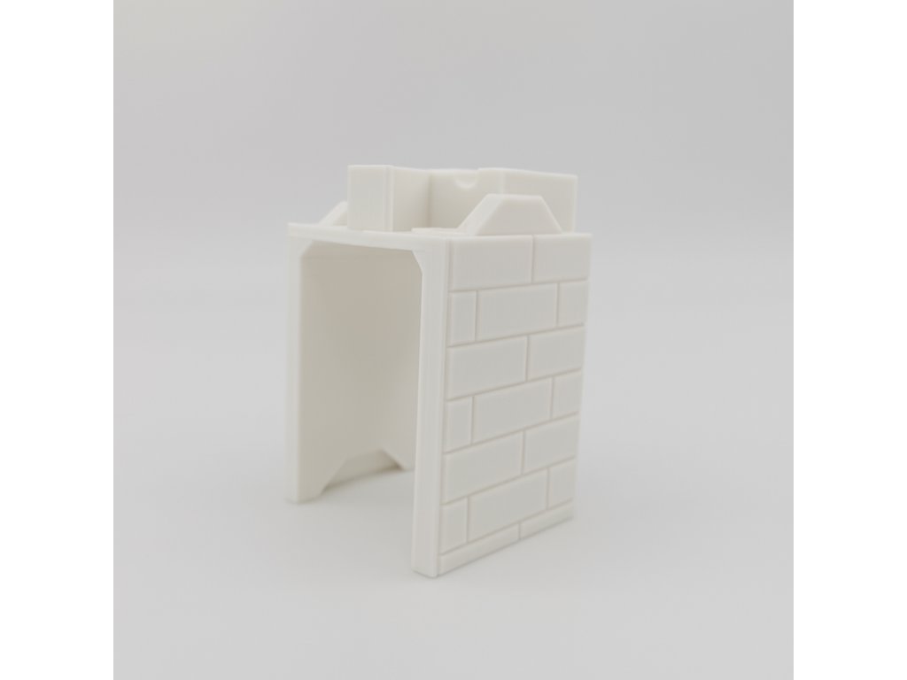 Stabilní a detailně zpracovaná podpěra mostu s cihlovým vzorem.